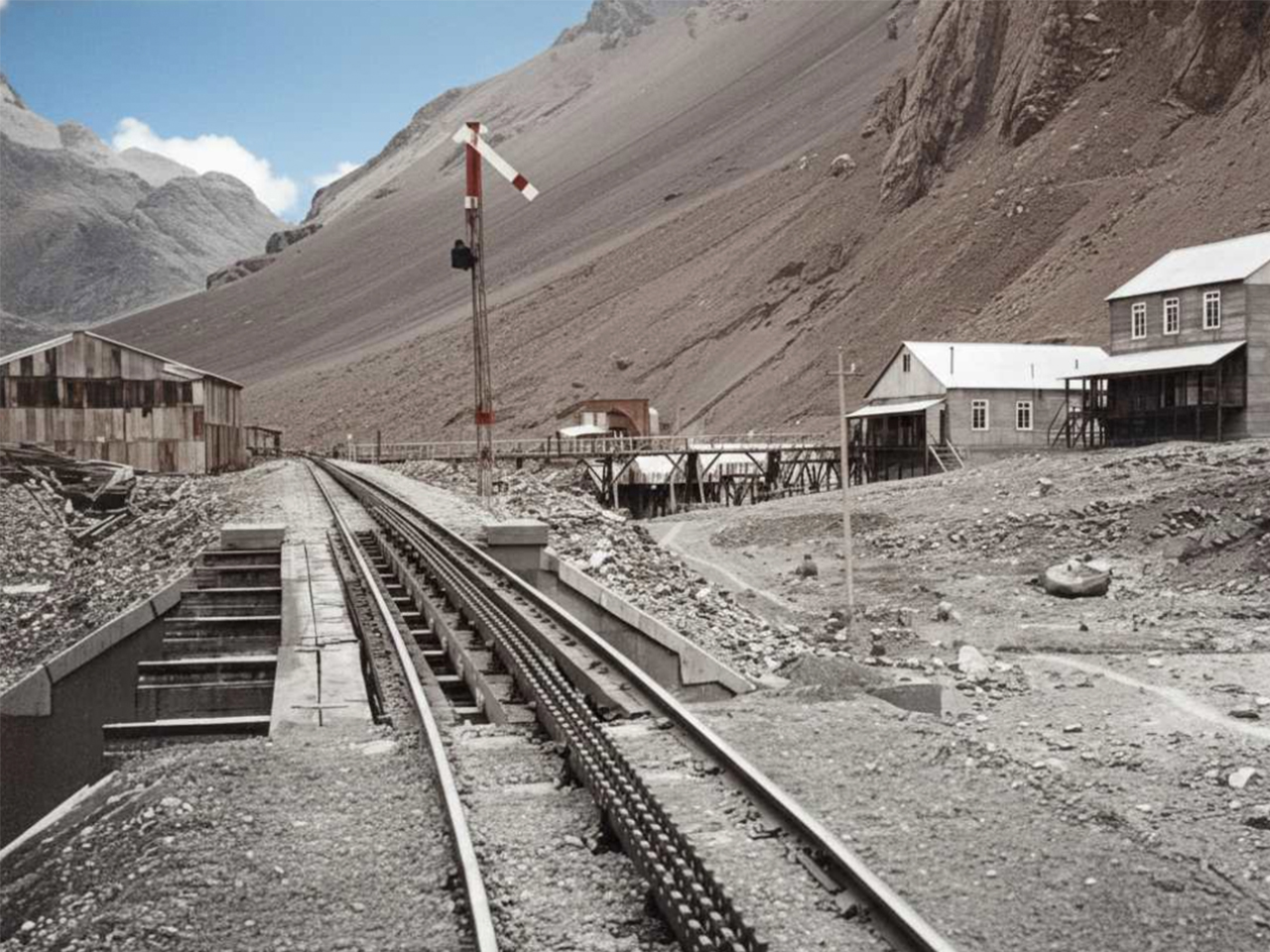Un gran aluvión afecta gravemente el sector ferroviario de Río Blanco–Caracoles, provocando la desaparición de importantes tramos de vía y la interrupción definitiva del tráfico trasandino.